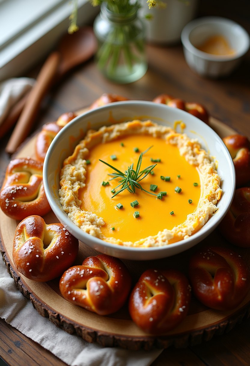 Lastly, don’t forget the vessel. A rustic wooden bowl or a sleek, minimalist dish can set the mood for your presentation. And arranging the pretzels around the dip in an artful manner is the cherry on top.