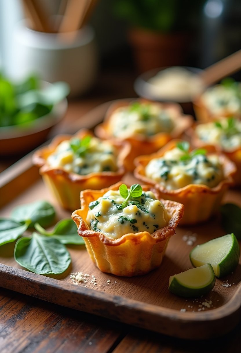 Picture this: you’ve just pulled a tray of golden-brown, crispy wonton cups filled with creamy spinach-artichoke dip from the oven. The air is filled with a savory aroma that’s as inviting as a candlelit dinner—and just as romantic. But how do you serve these little parcels of joy to make the moment even more memorable?